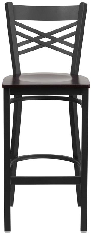 X Back Black Metal Bar Stool with Walnut Wood Seat