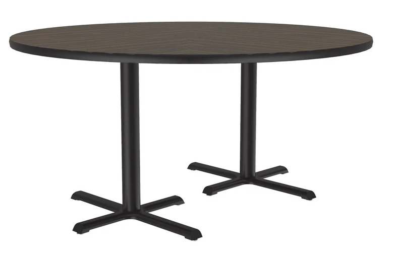 This 60" round café and breakroom table is a perfect choice for restaurants, cafeterias, and commercial dining spaces. It features a high-quality decorative laminate top available in a variety of finishes, including cherry, mahogany, walnut, and two granite options—ensuring a match for nearly any interior décor.