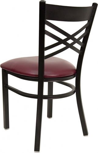 Metal X Cross Back Restaurant Chair Burgundy Vinyl Seat