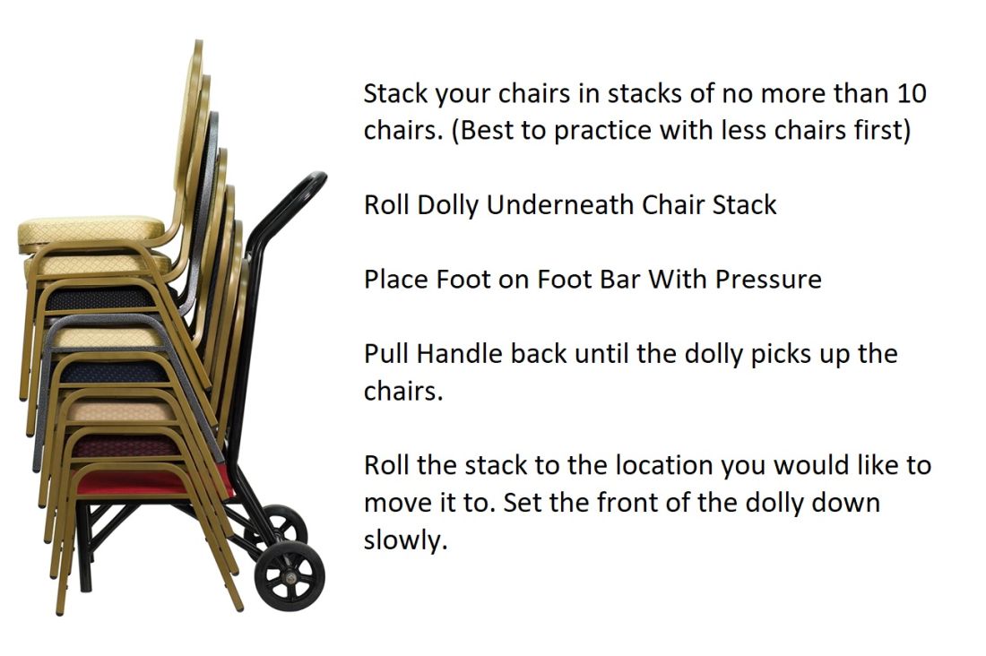 - Roll dolly underneath chair stack.