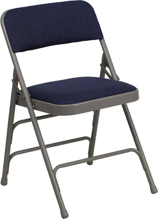 This Folding Chair features a beautiful blue fabric upholstery over a well padded seat and back. Constructed of premium grade steel, these chairs will last for years.