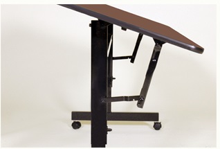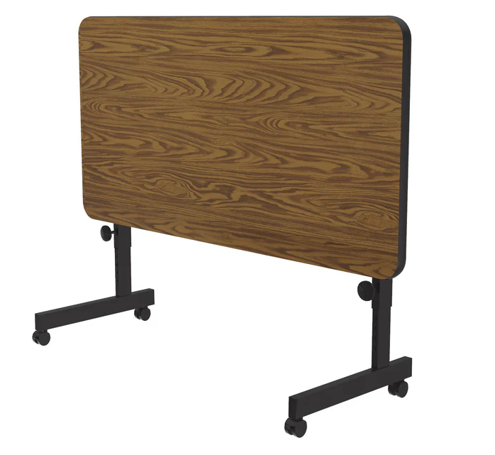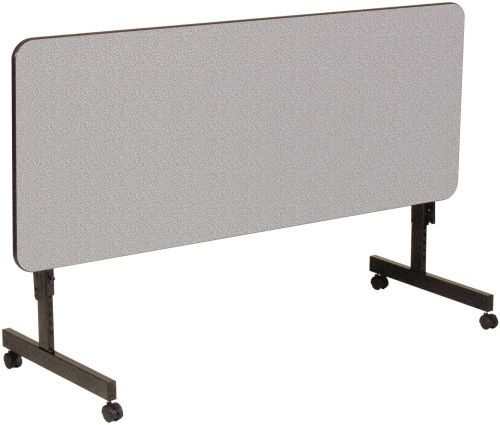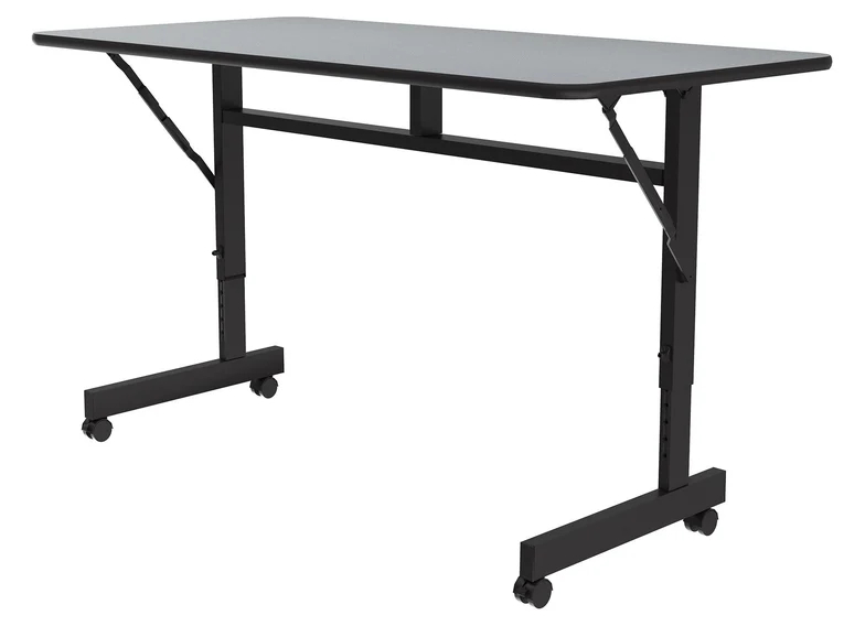 This versatile table has 3 unique attributes. The height adjusts from 23" to 31", has wheels, and the top flips while not in use. These attributes make it perfect for seminar, training, and classroom environments. There are 3 sizes available to choose from. Gray granite, and walnut are the colors available.