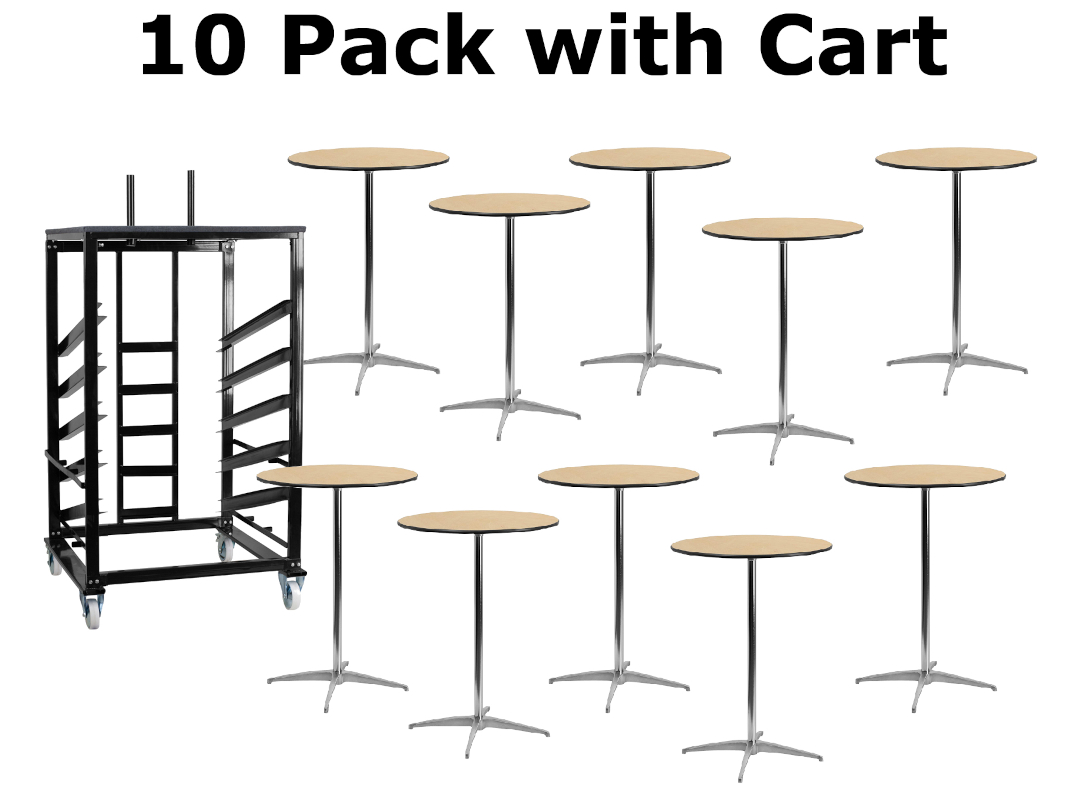 10 Pack Plywood Highboy Tables 30 Inch Round with Cart