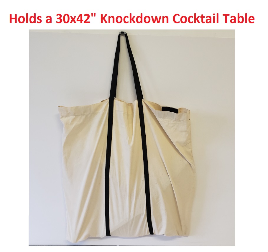 This storage bag is designed to store 1 30x42 cocktail table. (top,base, and pole). It has 3 fabric separated compartments to protect your table top, and base from being scratched.