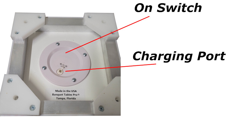 The table uses a rechargeable internal battery that charges via the included wall adapter.