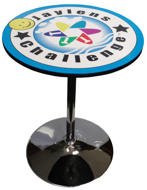 Banquet Tables Pro® branded logo & graphics tables are great for trade shows, concerts, events, promotions & much more! These tables will break down into 3 pieces when the event is over. We will put your corporate logo, event name, etc. right on the table top. Made in the USA.