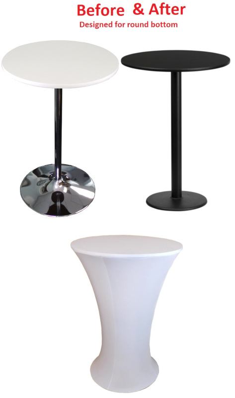Banquet Tables Pro round bottom spandex covers for cocktail tables are available in 2 standard cocktail table sizes.