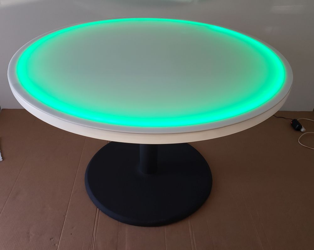 48 Inch Round Light Up Glow Top Table with Round Black Cast Iron Base