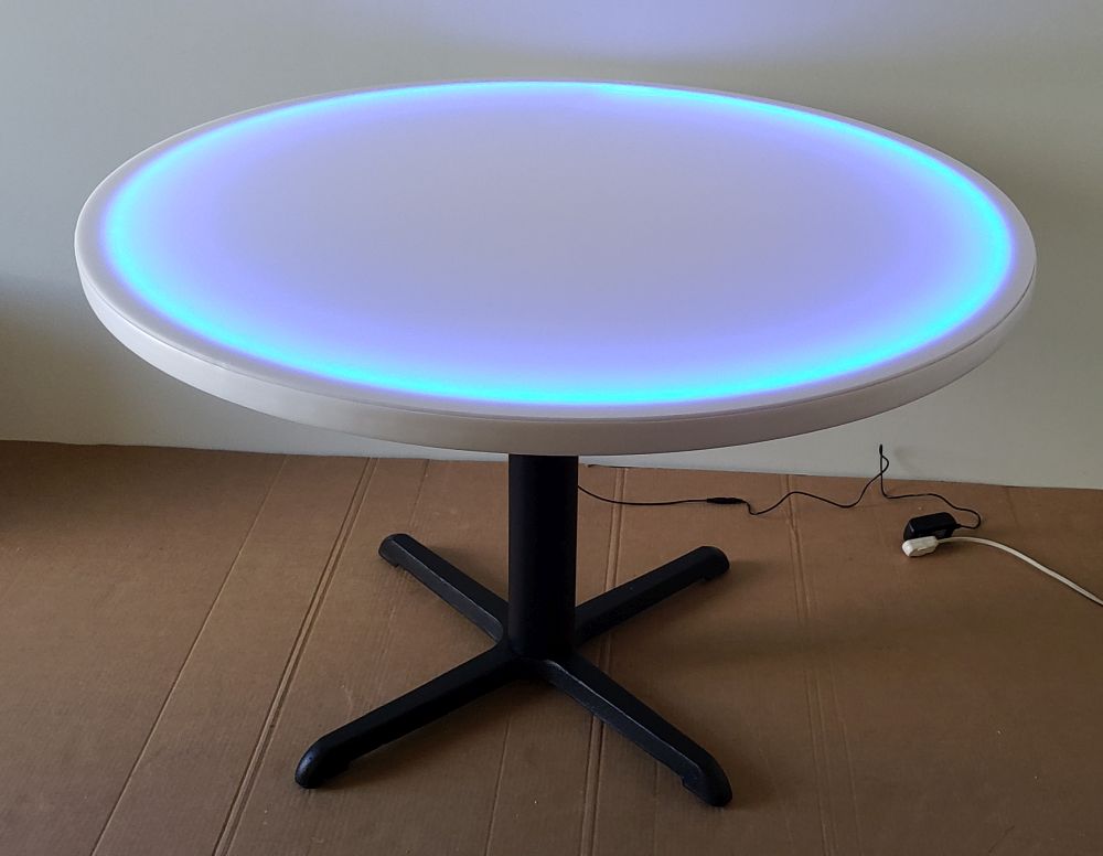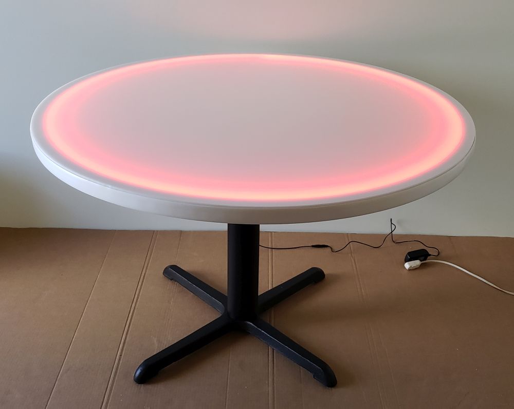 Banquet Tables Pro® 48" round glow tables can seat 6 people comfortably. This item features a black cast iron X style permanent base. Great for nightclubs, sushi restaurants , or any other permanent environment where glow furniture is used. We also manufacture a portable version of this size as well.