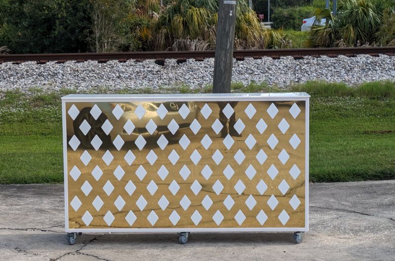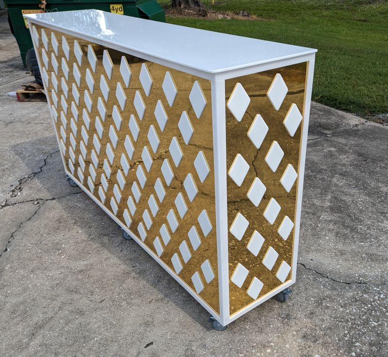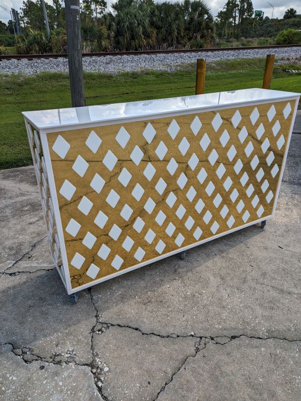 Gold Mirror Background with White Diamond 3D Raised Pattern.