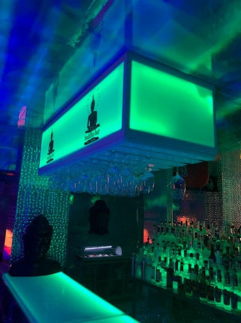 LED GLOW Branded Overhead Wine Glass Rack and Cabinet Combo for Bars and Clubs