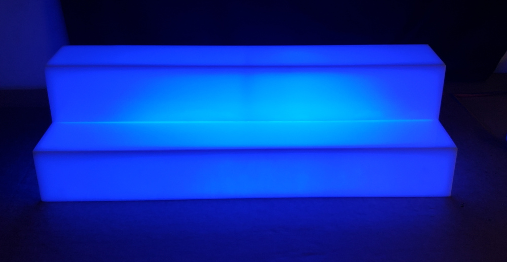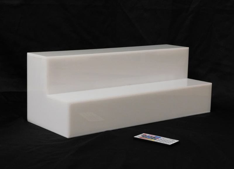 Banquet Tables Pro® LED glow 2 tier bottle display is perfect for commercial & home bars, restaurants, nightclubs, retail stores & more! The color changes with the click of a remote! It features an all white acrylic finish when turned off & a full LED glow when turned on.