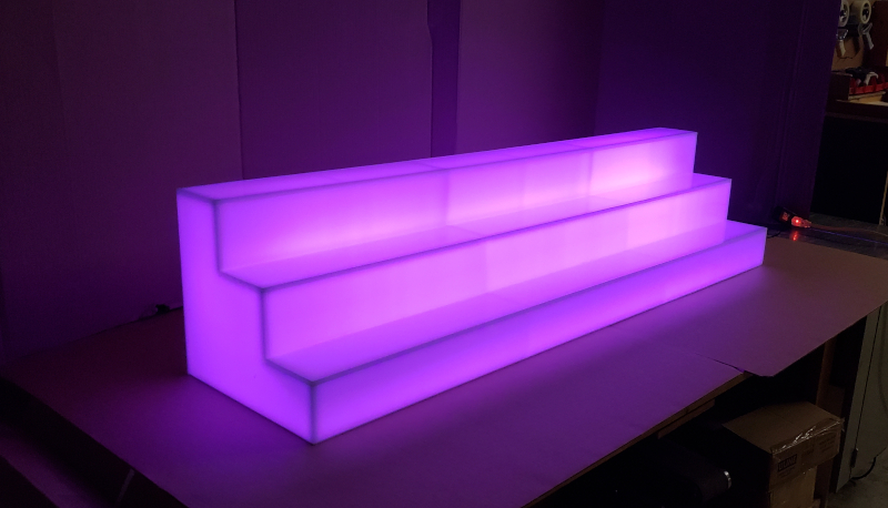 Banquet Tables Pro® LED glow 3 tier bottle display is perfect for commercial & home bars, restaurants, nightclubs, retail stores & more! The color changes with the click of a remote! It features an all white acrylic finish when turned off & a full LED glow when turned on.