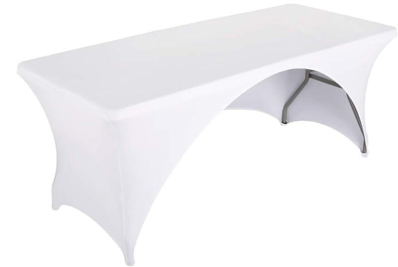 Overstock Sale-White Open Back 6 Foot Stretch Spandex Table Cover