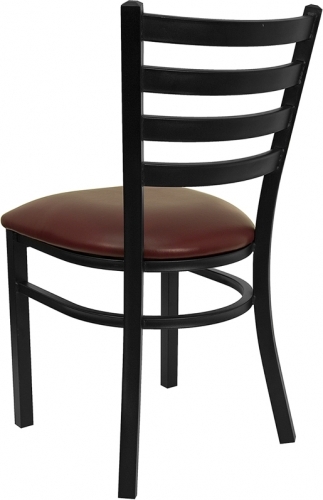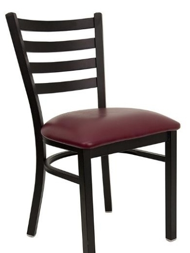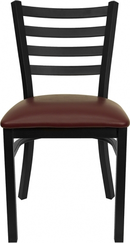 Black Metal Ladder Back Restaurant Chair w/ Burgundy Vinyl Seat