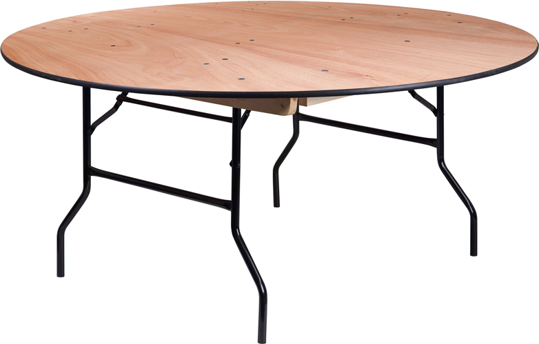66 Inch Diameter Round Wood Folding Banquet Table with Black Edge and Frame