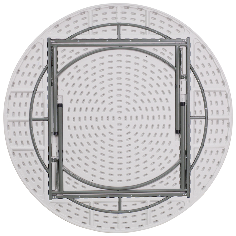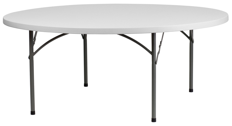 This 6 foot round folding table features a blow molded plastic top & steel frame. Applications include anything from commercial to home. Easy to setup & store.