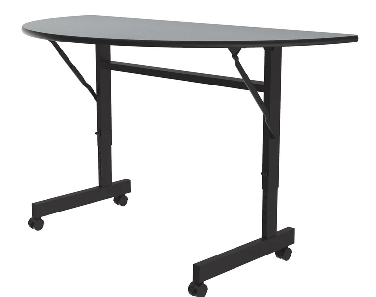 Half 48 Round Melamine Adjustable Height Nesting Flip Top Table w/ Wheels