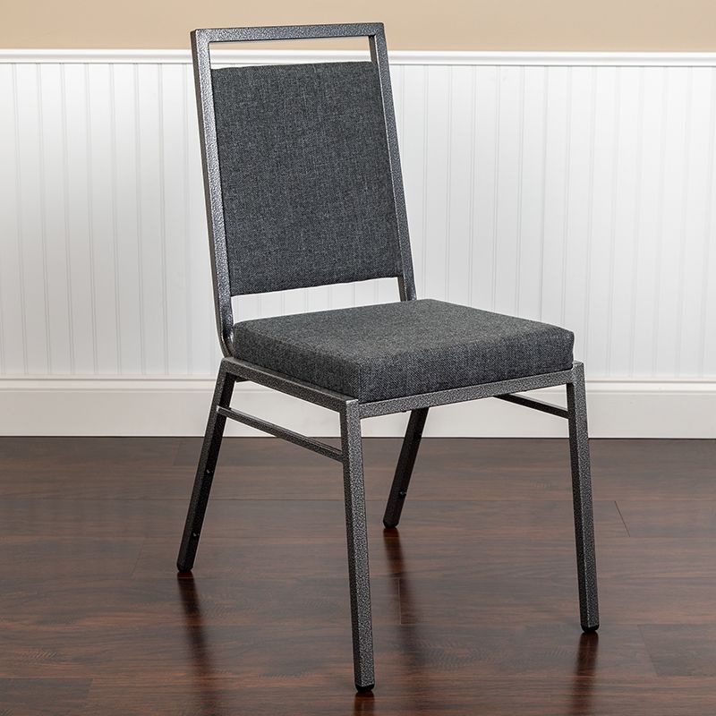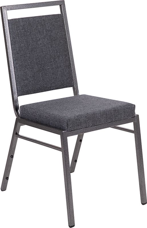 Square Back Stacking Banquet Chair with Gray Fabric and Silvervein Frame