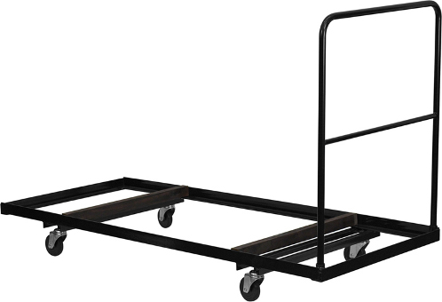 This cart can hold 8-12 rectangular folding tables stacked flat. The amount of tables the cart can hold depends on the table thickness. A plywood table is not as thick as a plastic table. So it will hold less plastic tables than plywood.