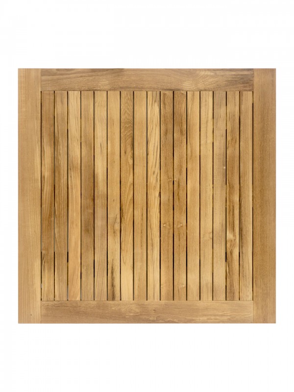 Square Teak Restaurant Table top. Teak table tops are a perfect complement to any outdoor rated base. Teak is ideal for outdoor table because of the natural oil it contains. Teak turns a silver gray as it ages outside. Teak oil is a way to hold its original color if need be.
